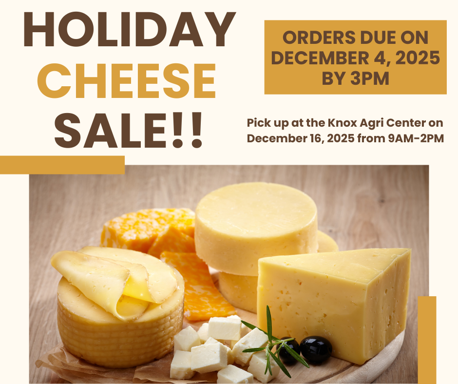 The Knox County Farm Bureau's Education & Outreach Task Force Annual Holiday Cheese orders are due on Thursday, December 4, 2025 by 3PM.